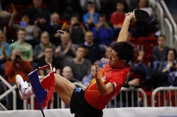 2014年张继科在世界杯决赛拿了男单世界冠军,兴奋过度一脚踹碎场边广告牌,冠军的奖金大概27万人民币被没收。当然对张继科来说见怪不怪的“失态举动”被冠军的光环淹没,后来还被粉丝当成了“霸气动图”素材。