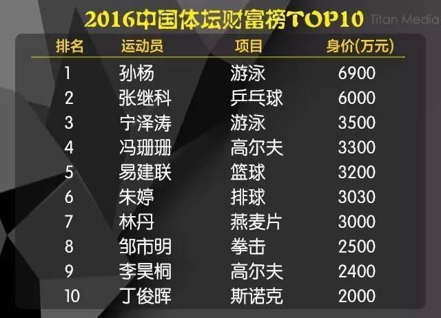 2017年,人们通过一张财富榜排名得知,身为广告常客的张继科身价已达6000万元,和第一名孙杨只差900万,甩开第三名宁泽涛两千多万。