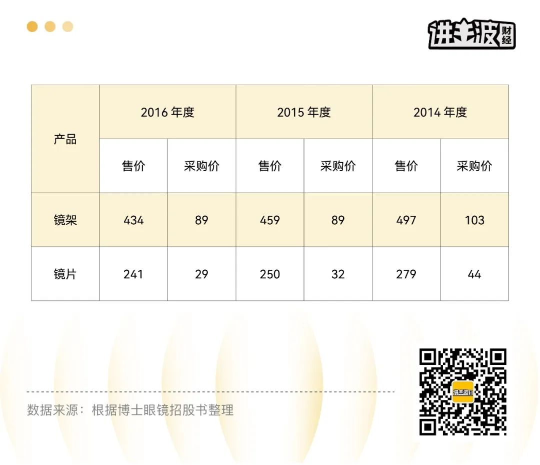 眼镜行业是公认的暴利行业,央视也曾报道过,眼镜店800元的镜架,批发价仅为55元。博士眼镜的招股书似乎“坐实”了这一点,博士眼镜招股书显示,2016年直营门店零售镜架,均价为434元每副,镜片为241元每片。而镜架的采购价,每副仅为89元,镜片29元。