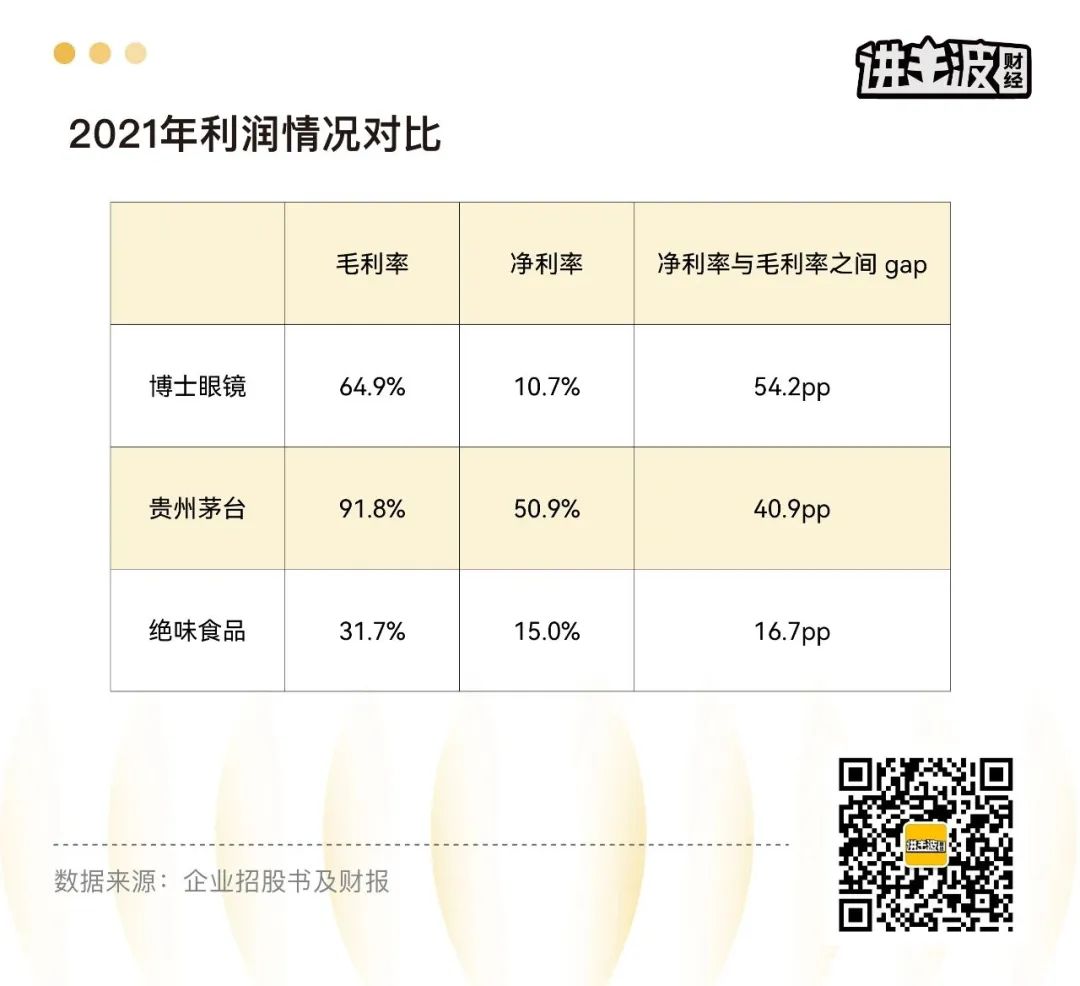 如果和白酒对比不够有说服力,博士眼镜2021年净利率,比绝味食品还低4.3pp。