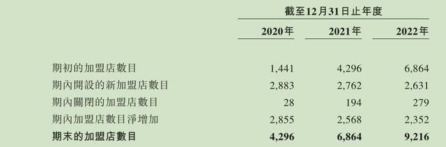 截止目前,锅圈食品的门店大部分为加盟店,仅5家自营店,其他为9216间加盟店。近三年锅圈食品的加盟店快速增长,2020年增加2883家,2021年增加2762家,2022年增加2631家。公司的门店总数由2020年初的1441家增至2022年底的9221家,相当于三年开了近8000家门店。