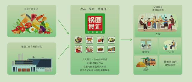 作为一家火锅烧烤食材供应商,锅圈食品既为广大中小型餐饮企业提供B端食材供应,也为个人消费者提供在家吃饭餐食解决方案产品。