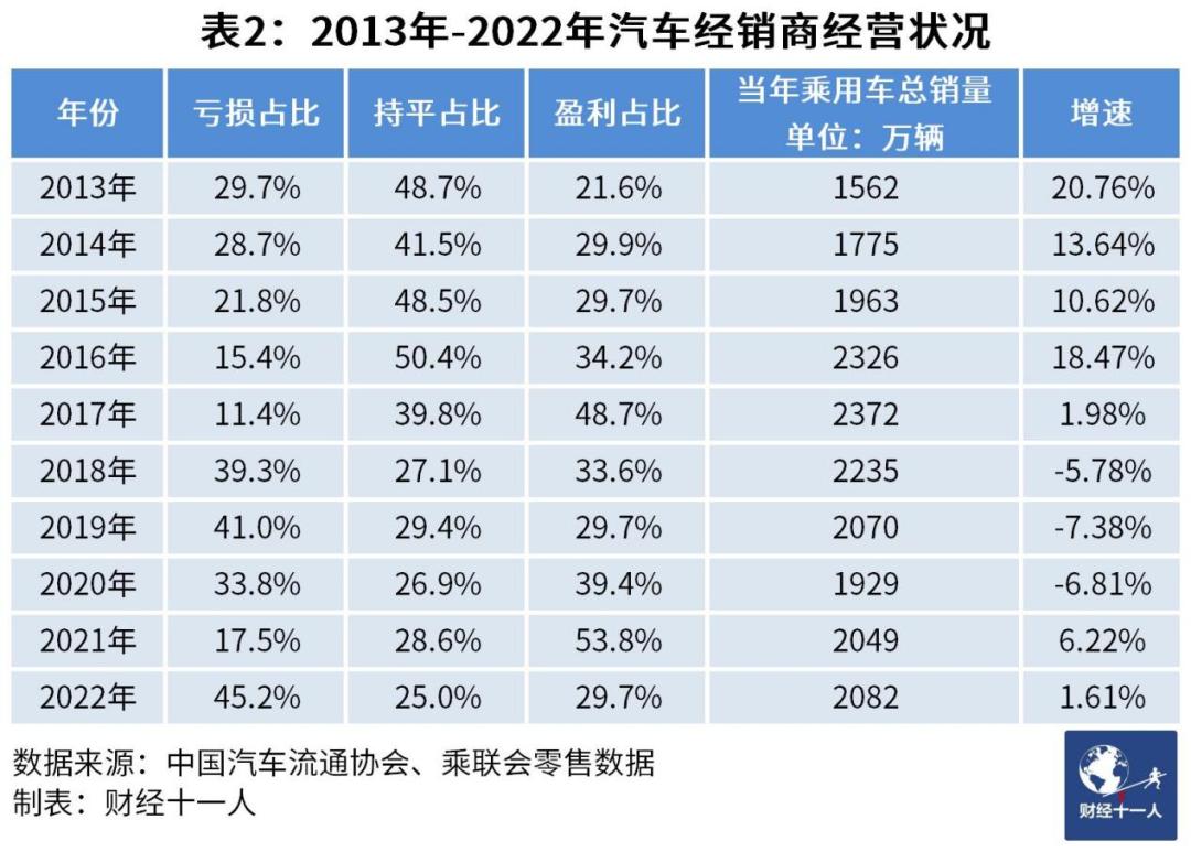 2023年前三个月车市负增长超过10%,全年增速为正难度很大,经销商2022年亏损面已经高达45%,今年如果车市负增长,亏损面进一步扩大,过半经销商亏损并非不可能。