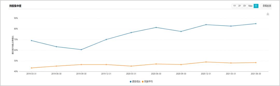 以诺安成长为例,在2021年前其快速崛起的过程中,前十大重仓股占比都超过了80%,而同类平均还不足50%。