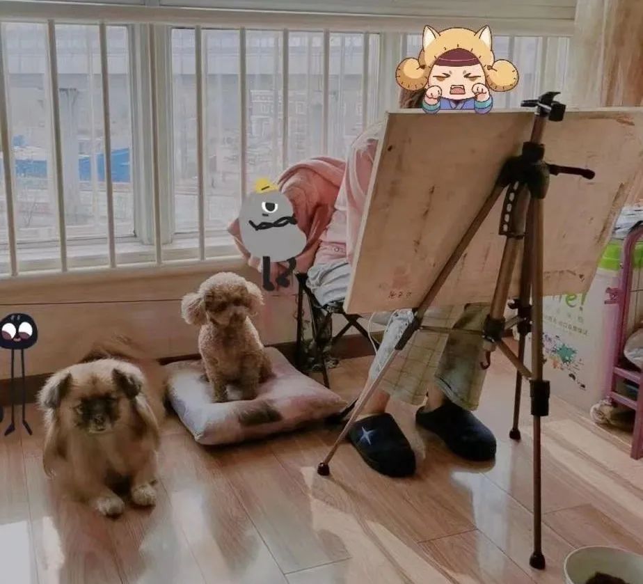 作为一位美术老师,肉包拳时常会回忆起那个阳光灿烂的午后:她在画架上画画,悠悠和另一只小狗萱萱不吵不闹,陪她作画。