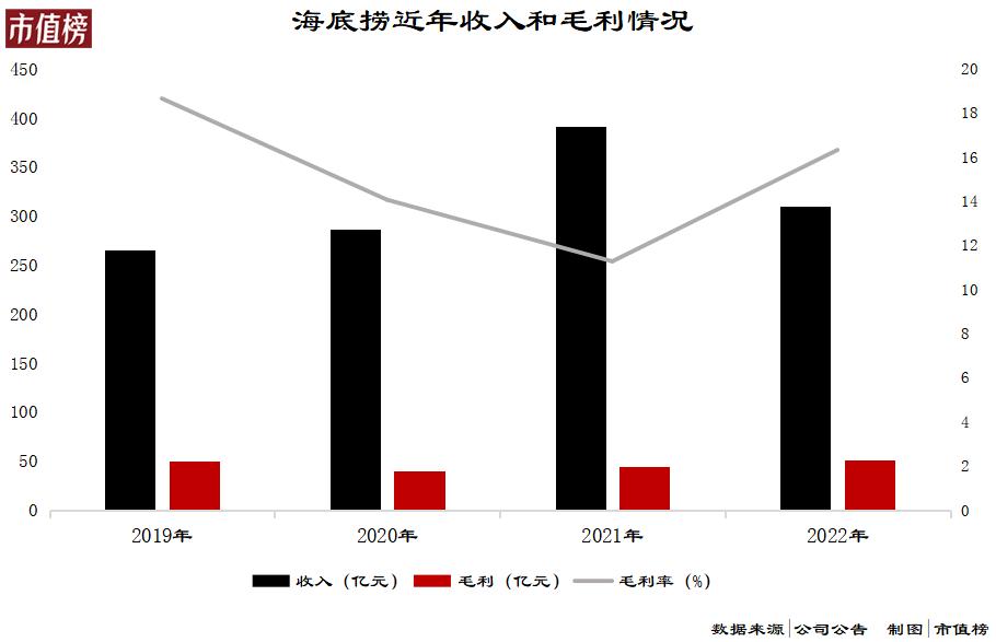 2022年,海底捞的餐厅经营毛利率约为16.32%。比2021年的11.27%、2020年的14.06%都有所提升,但不及2019年的18.65%。