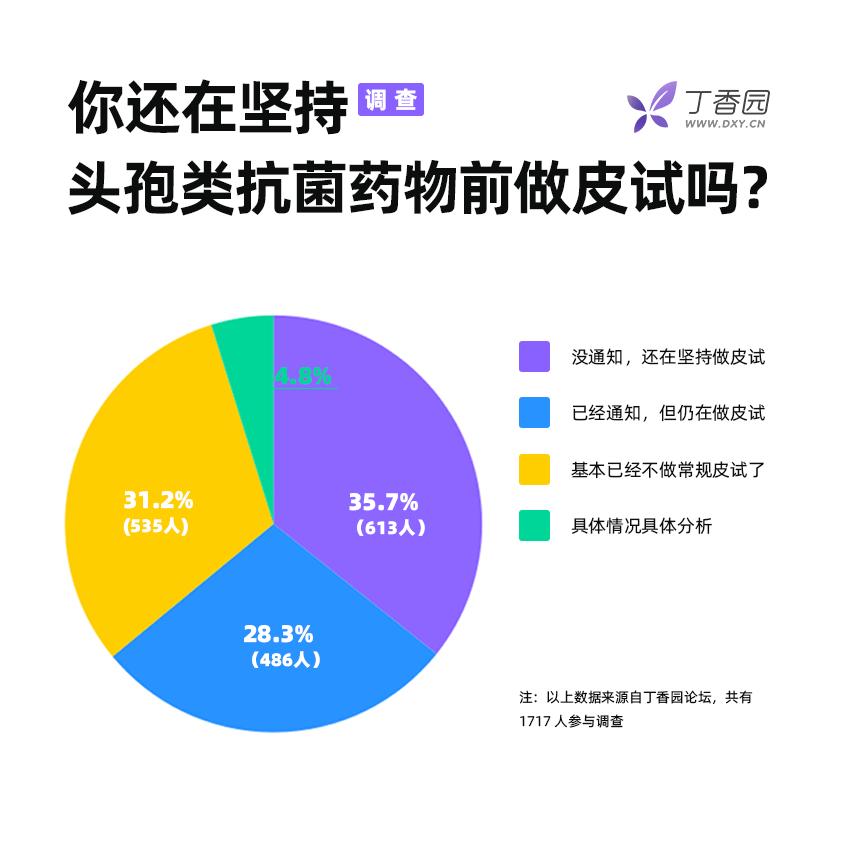 丁香园论坛调查中,64% 的医务人员仍然坚持做头孢常规皮试