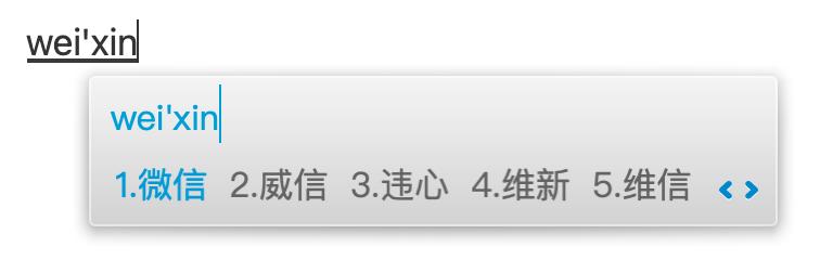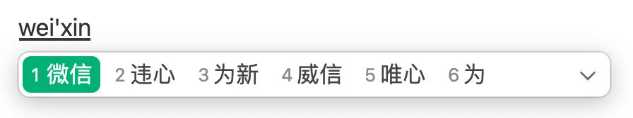 这是搜狗输入法默认状态下输入「微信」拼音后出现的结果以及视觉呈现方式。