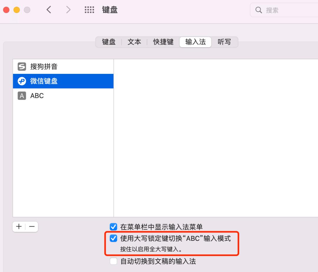 不过,我也好奇为什么搜狗输入法在同样的设置下却可以直接切换成大写模式。