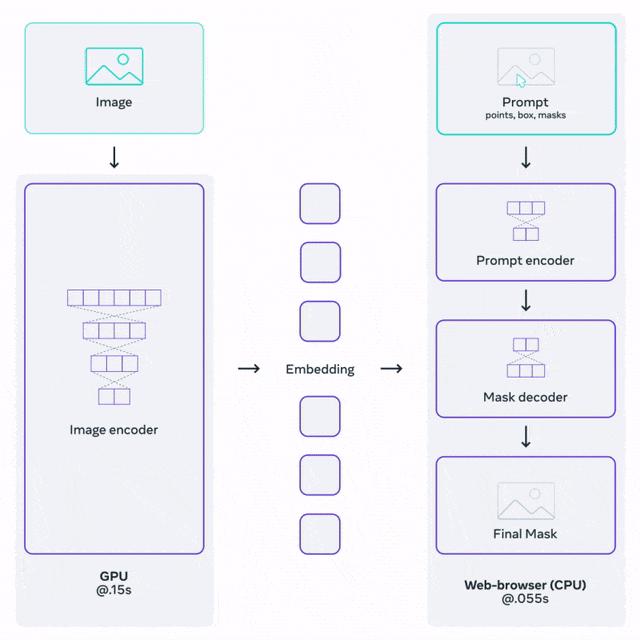 在计算出图像嵌入之后,SAM可以在短短50毫秒内生成一段图像,并在网络浏览器中给出任何提示。