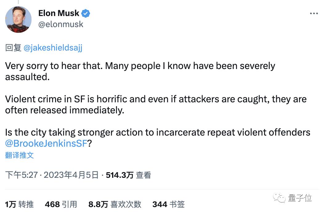 与此同时,马斯克也注意到了这一消息,展开抨击并呼吁当地加紧对暴力犯罪的监管措施。