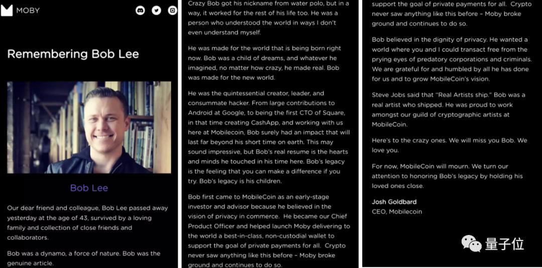 鲍勃的现任雇主MobileCoin CTO,专门发了一篇悼文回顾他一生的贡献。