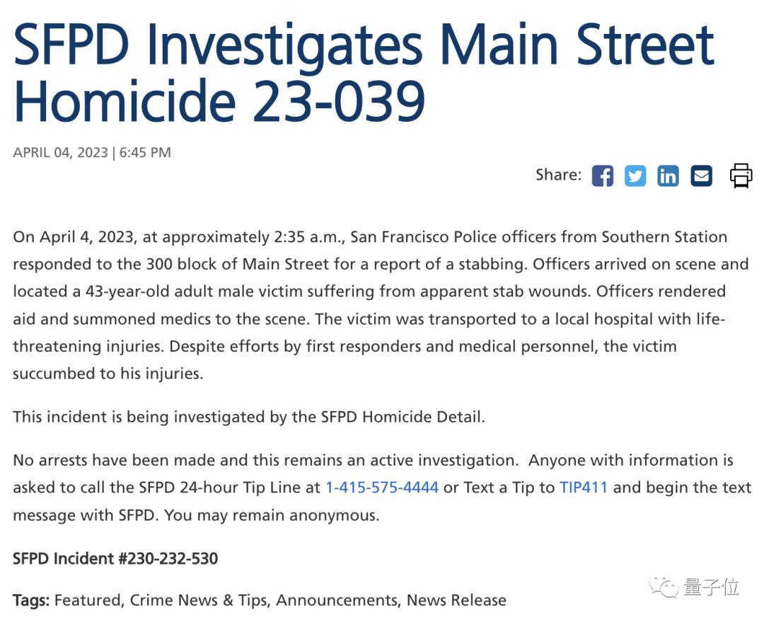 据旧金山警局官方通告,他们于当地时间周二凌晨2点35分左右接到报警(具体遇袭时间不知)。
