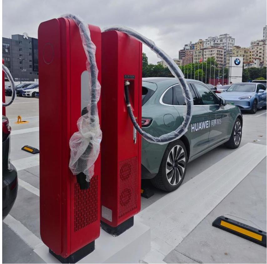 华为公司也曝光了600Kw超充桩,号称在5分钟内为电动车充电80%的电量,该充电桩的输出电压范围为200-1000V,最大输出电流为600A,最大输出功率为600Kw,可以满足不同型号的电动车充电需求。