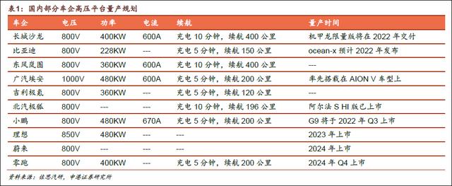 与此同时,为协同发展大功率高压快充,不少车企均已推出基于800V及以上高压平台的高端车,实现快充性能,达到充电10min 续航增加200km左右。