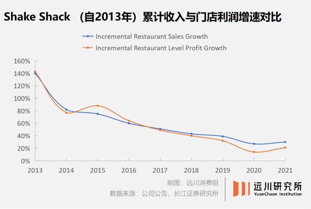 美国股市将ShakeShack的跌落总结为:经营及财务模型随门店网络而持续衰变。从单店收入来看,ShakeShack曼哈顿门店相当于其他地区门店的两倍,而随着ShakeShack的扩张下沉,单店收入必然会被逐渐拉低。