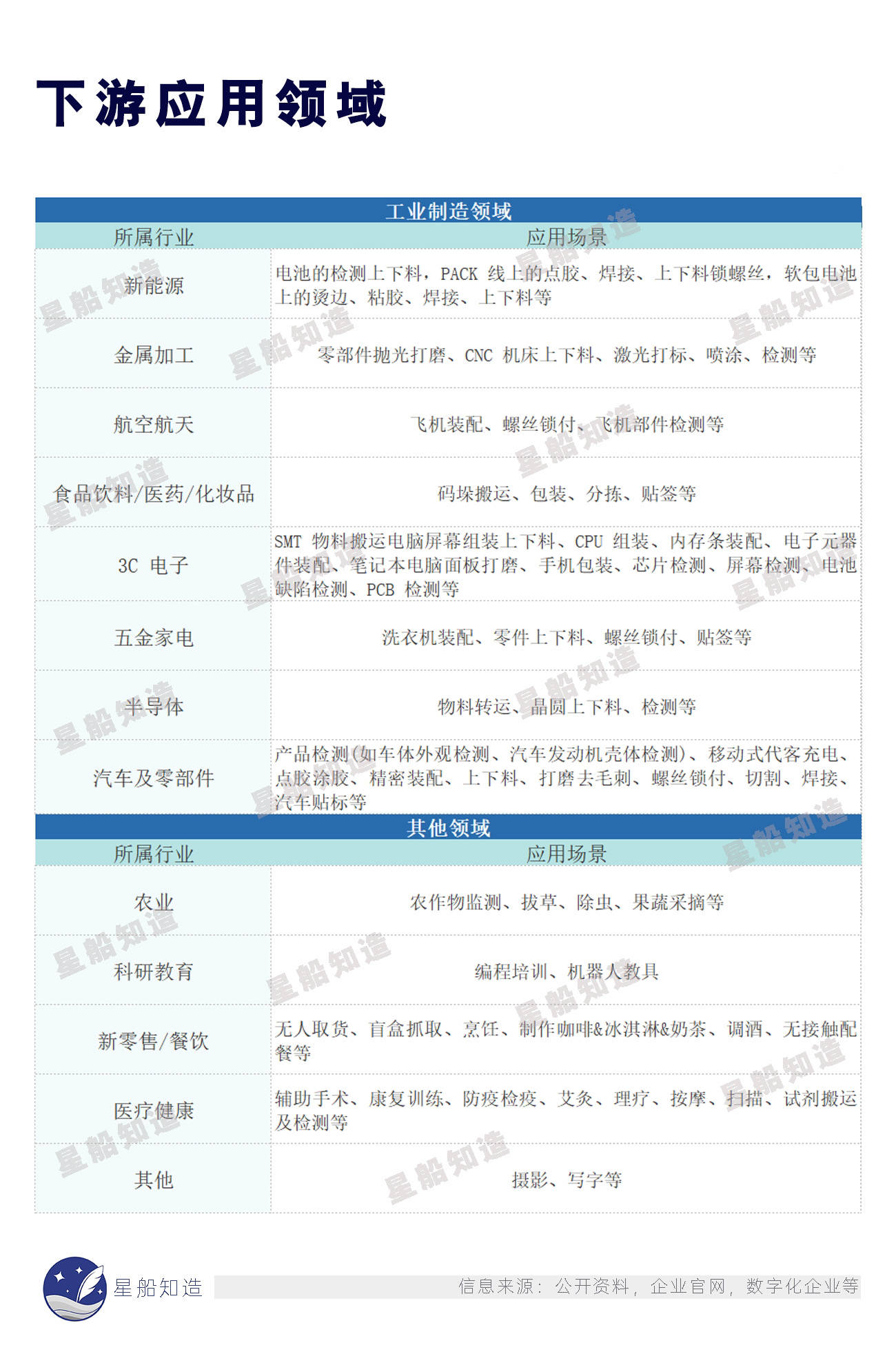 上述场景在实际应用中还有很多,比如在疫情期间,可以不断变换消杀角度的移动式喷雾机器人,又比如在酒店里可以自动上门送上物品的送货机器人等等。简而言之,由于自带的安全及人机交互属性,在被复合了更多的功能之后,除了第二产业的制造业,协作机器人将会更多地被应用于第三产业的服务业以及第一产业的农业,林业、畜牧业等相关产业。