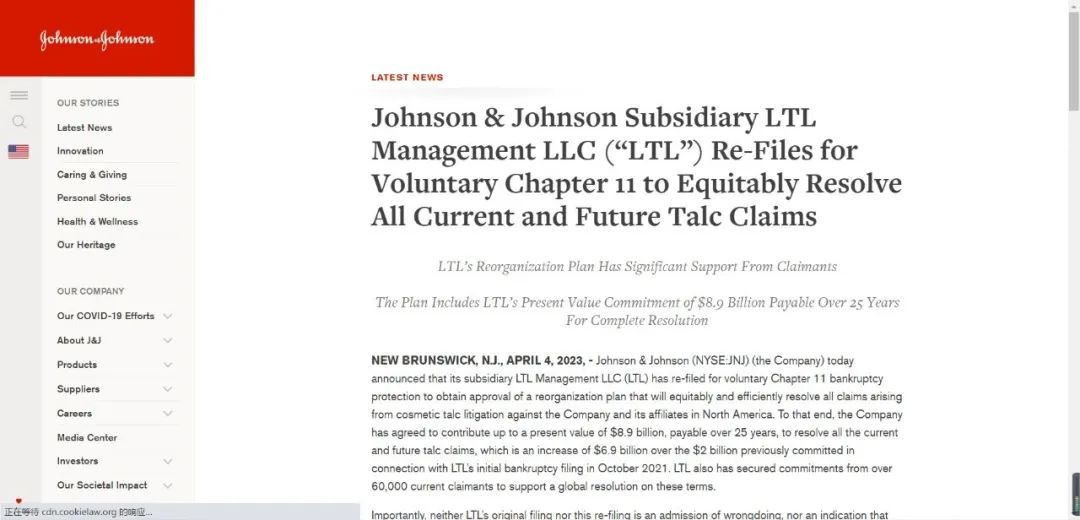 不过,强生仍坚持滑石粉是安全的这一长期立场,称其子公司LTL Management两次申请破产保护,都不属于承认错误的行为。