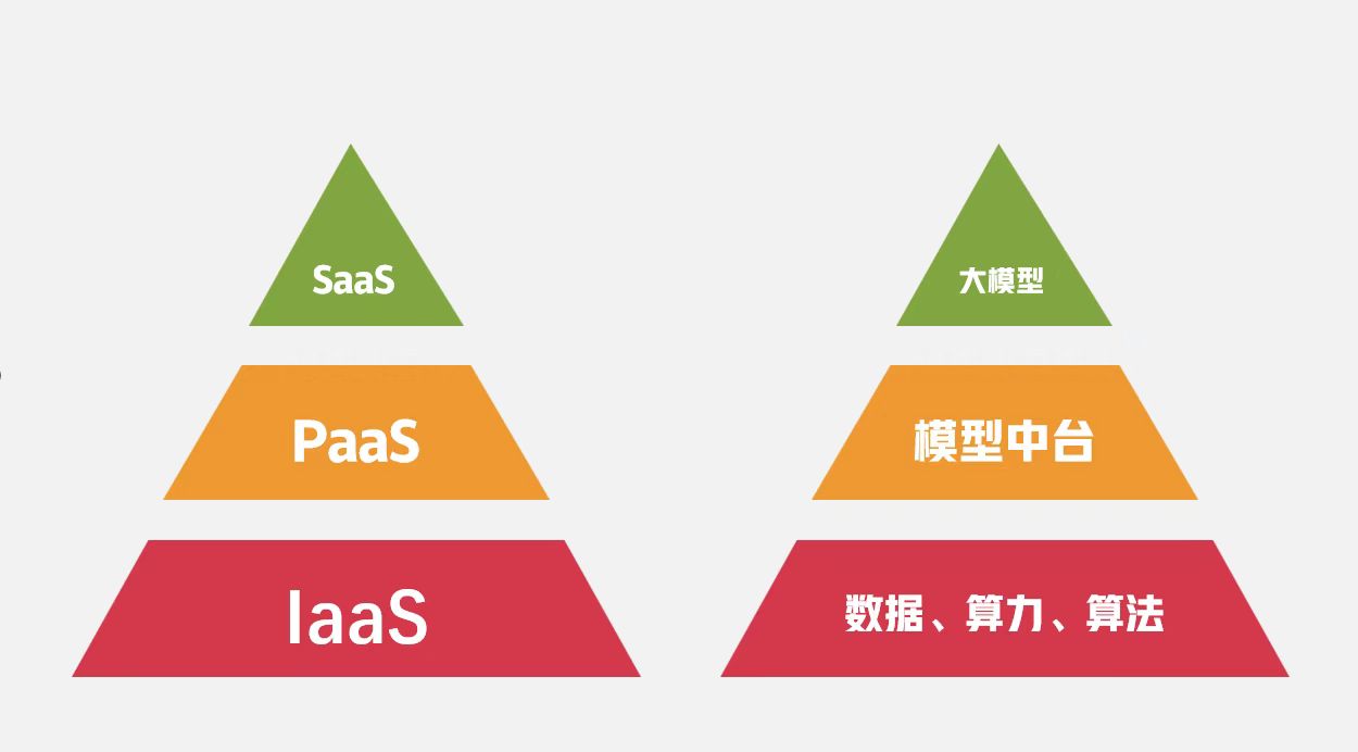 如果我们把大模型看作一个云产品,那么数据、算力、算法可以被看做是这个产品的“IaaS”,即基础设施。而在“基础设施”和前台应用的SaaS之间,还存在一个PaaS平台作为中间层,承担起为SaaS提供部署平台,开发工具等任务。
