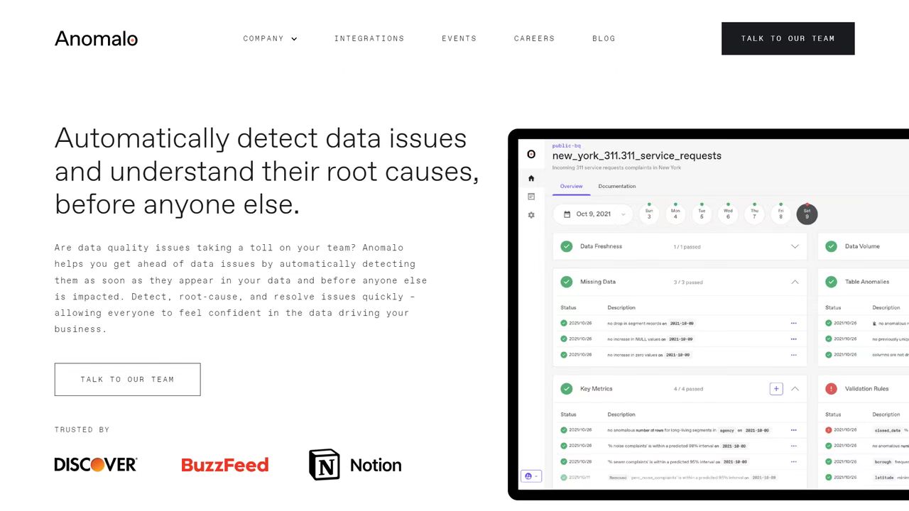 Notion是Anomalo的核心客户之一,Notion是国外最大的All in one 办公软件,国内的飞书学习的就是它。其软件工程师对此评价到“Anomalo团队的功能、集成数量和响应速度够非常强大,用户易于导航并找到他们正在寻找的内容。”