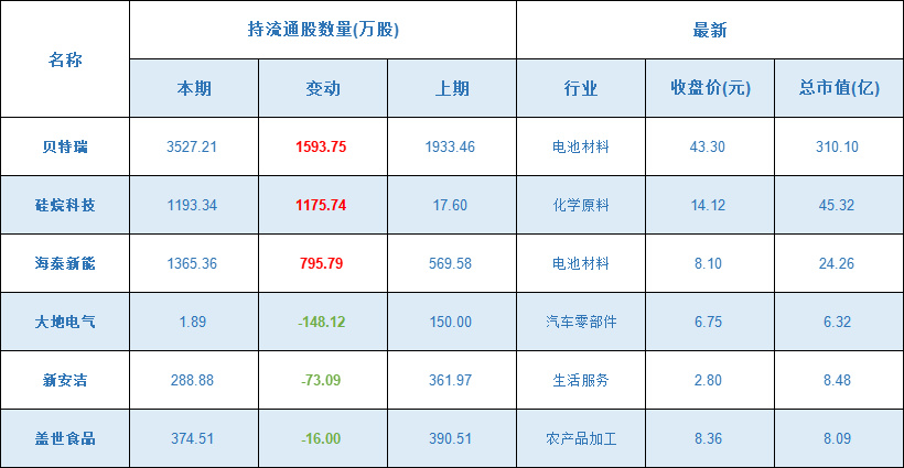 贝特瑞:板块内的主题基金是减持的主力军,增持的机构以产业基金、公募为主。