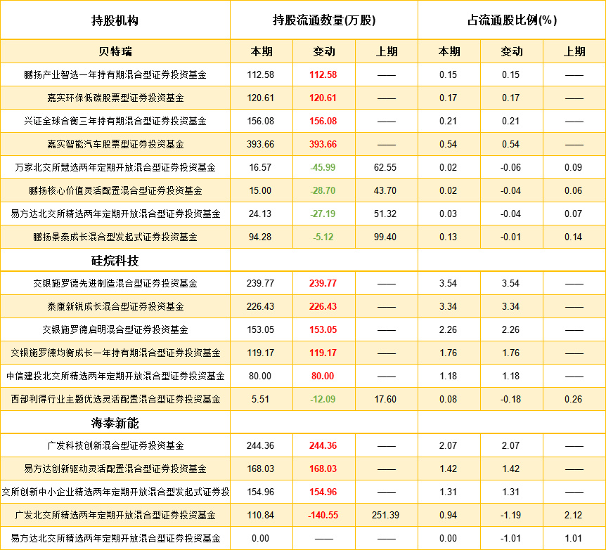 海泰新能:除了增持幅度最高的广发科技创新为混合型投资基金,其他增减持机构都是板块内主题基金。