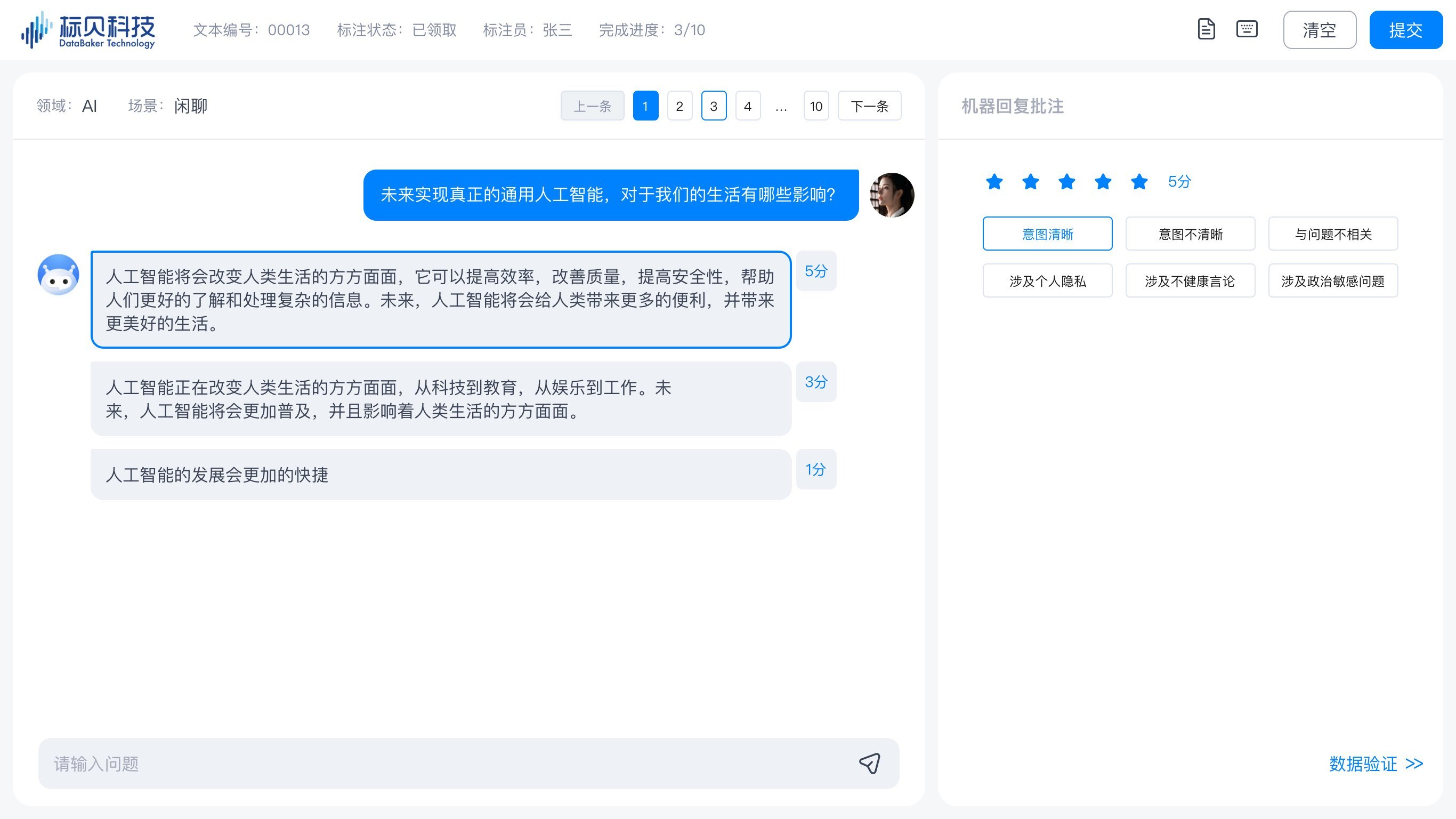 如何有效提高语料库的质量和多样性,并增加数据使用的价值?标贝科技团队告诉36氪,在对话大模型优化数据设计方案上,标贝科技除了具备基本的数据采集和清洗技术以外,还拥有一系列高效处理数据、优化模型的核心技术。例如从头开始训练的模型微调技术、能够举一反三的终身学习技术,可省去大量的计算资源和时间,有效提高计算效率及准确率,满足市场对于训练数据质量的“苛刻”需求。