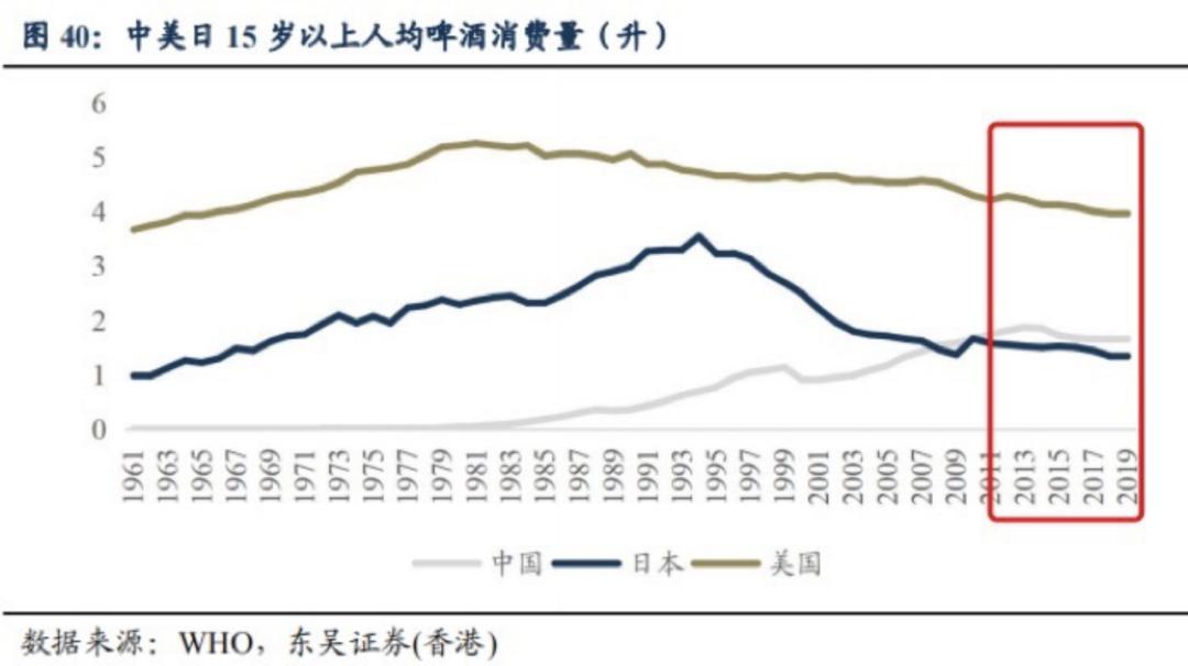 国内啤酒产业的成长,和美国日本呈现出很是相似的成长轨迹。