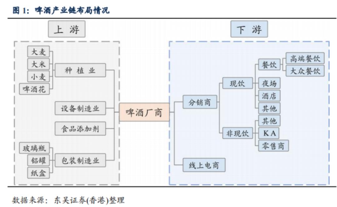 啤酒产业链分为上游和下游。