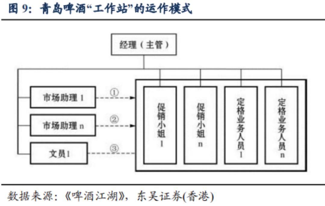 工作站组织完备,由主管带领大家完成地区业务,青岛啤酒也认为管理人员亲自督战可以鼓舞士气
