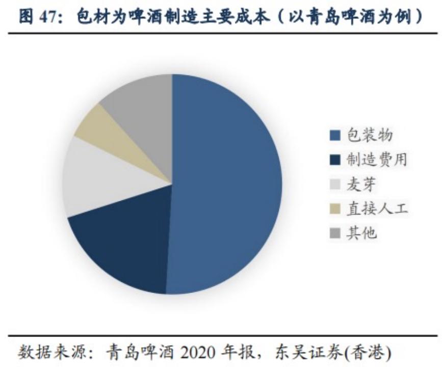 据青岛2020年年报数据显示,他们的包装物在总成本中占比达到50%。