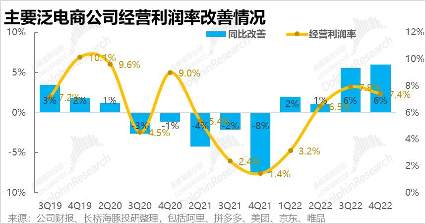 但实际转换速度之快还是小超海豚君的预期,四季度虽然还在行业周期底部,泛电商公司整体收入增速仅有7%,和二季度情况接近,业绩二次探底。