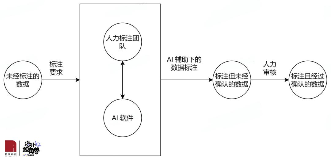 随着机器学习模型的发展,自动化数据标注的准确性提高,可以使用模型来辅助人工标注,比如模型预处理数据再发送给标注员;或人类作为审核员,审核并纠正模型给出的标注结果等等。与纯手动标记相比,AI 辅助标注加快数据标注的速度。目前,Scale AI 等数据标注公司都在努力减少数据标注过程中的人工参与比例。