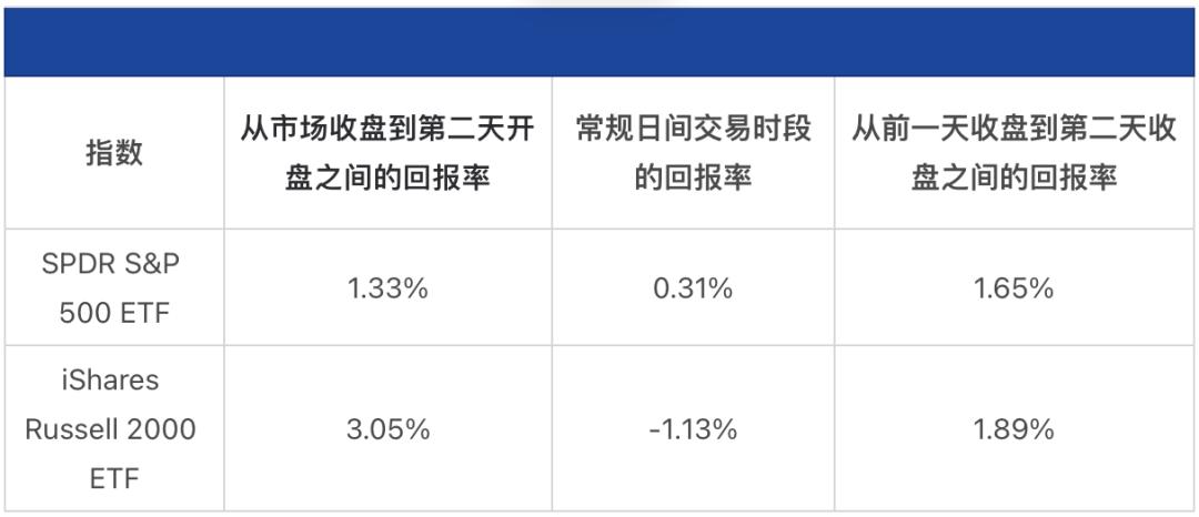 美国股市大部分日回报是在收盘和开盘之间这段时间里实现的。