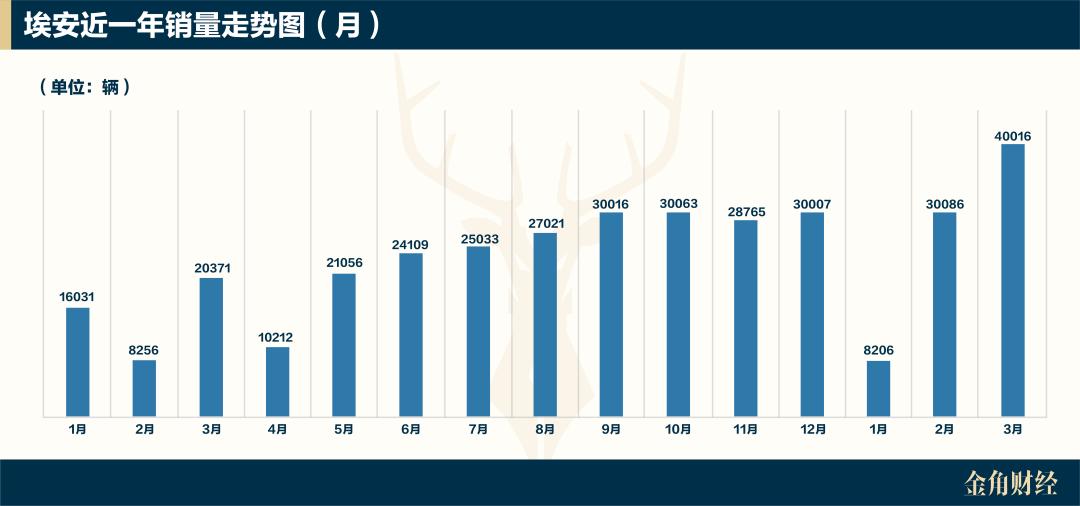直到这次3月销量彻底大爆发,估值过千亿的广汽埃安才真正引人侧目。
