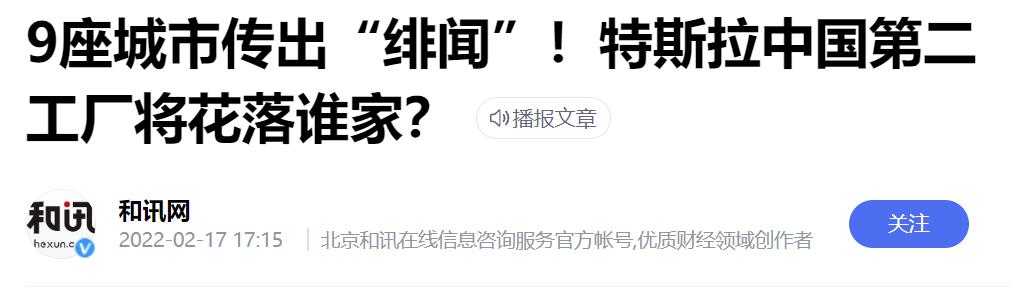 传得最凶的就是工厂选址了,像上海、青岛、沈阳、西安这些城市都被传出加入到了第二工厂争夺战。