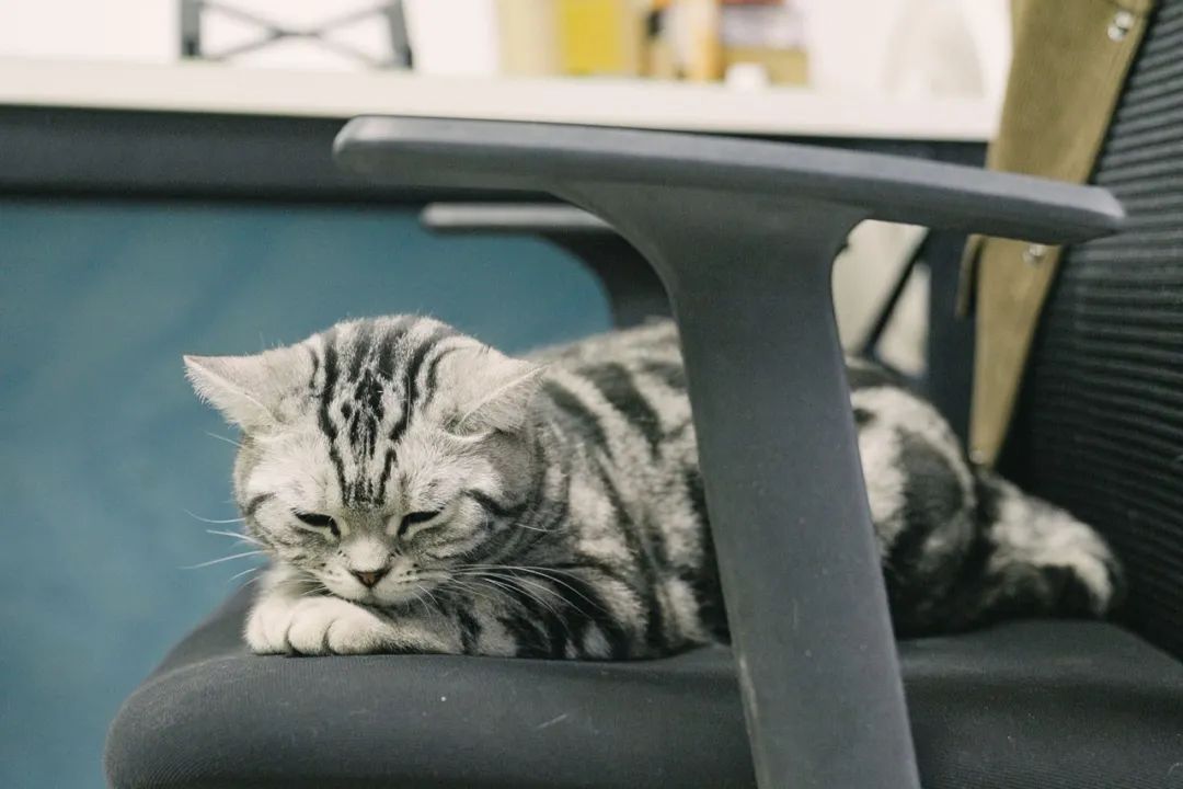 ▲偶尔来蔡磊工位上做客的邻居的猫