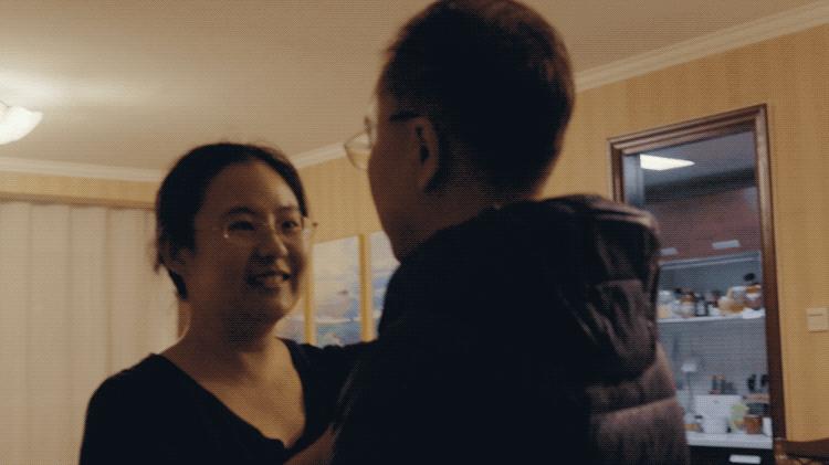 ▲分别一年半后,蔡磊与母亲、哥哥见面