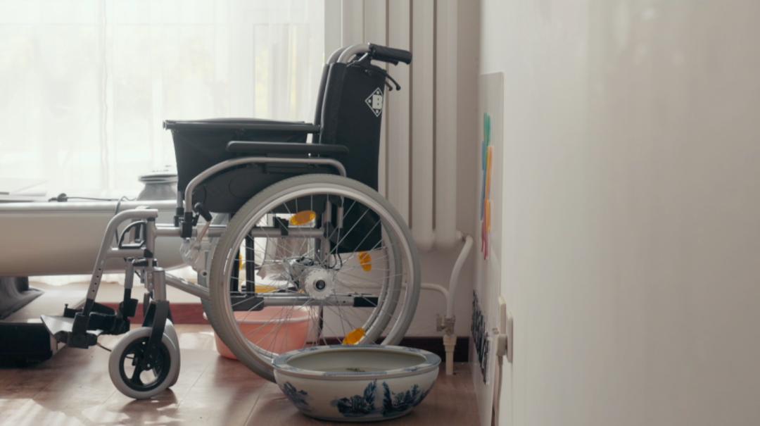 几个月前,最后一根能动的手指也倒下了。走路的时候,两根细细的胳膊垂在躯干两侧,无力地摆荡着。垂久了会疼,他喊来生活助理:“帮我把手放进口袋里。”