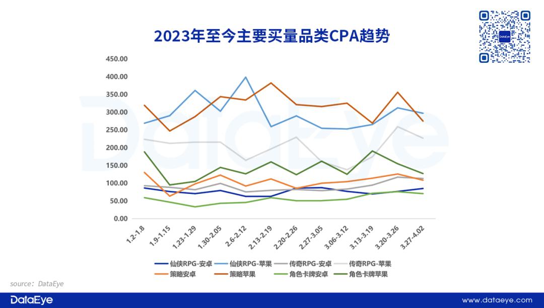 DataEye研究院从一家买量投放代理获悉:进入4月,买量价格维持高位,一些赛道(如传奇)价格飙升幅度较大。 主要是因为游戏市场开始复苏,并且部分厂商(特别是小游戏厂商)已经开始备战五一长假期,推高了价格。以下为DataEye研究院对部分赛道买量CPA的价格预估数据。