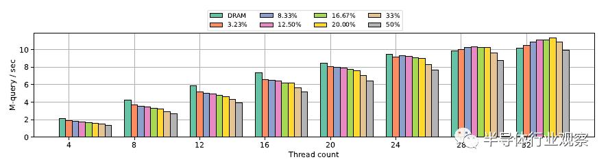 DSB的结果提供了CXL内存的一个有趣的用例,即只要计算密集型组件保留在DRAM中,以低需求率运行的缓存和存储组件就可以分配给较慢的CXL内存,并且应用程序的性能基本保持不变。