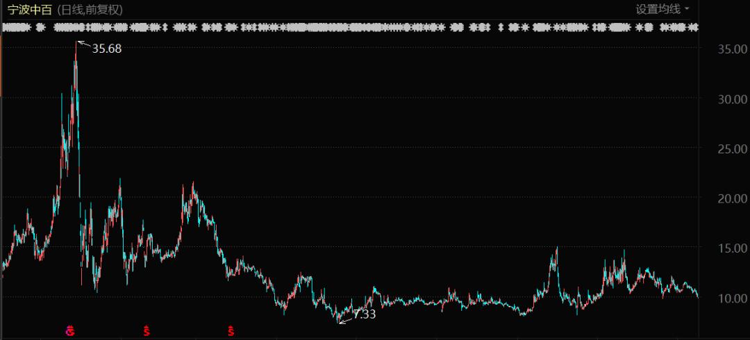 以宁波中百为例,2013-2015年期间其股价从5.95元一路上涨至历史最高点的35.68元,但在徐翔入狱后,这个发展势头就戛然而止。在经历了震荡下跌后,从2018年开始,宁波中百的股价基本就维持在8、9元的水平。