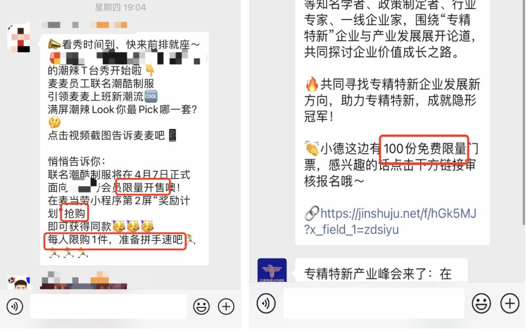 在私域的各个销售环节,如小程序、社群、朋友圈等,同样可以利用这类方式,短时间内吸引刺激用户下单购买,但前提是你的商品价值或优惠得足够吸引人。