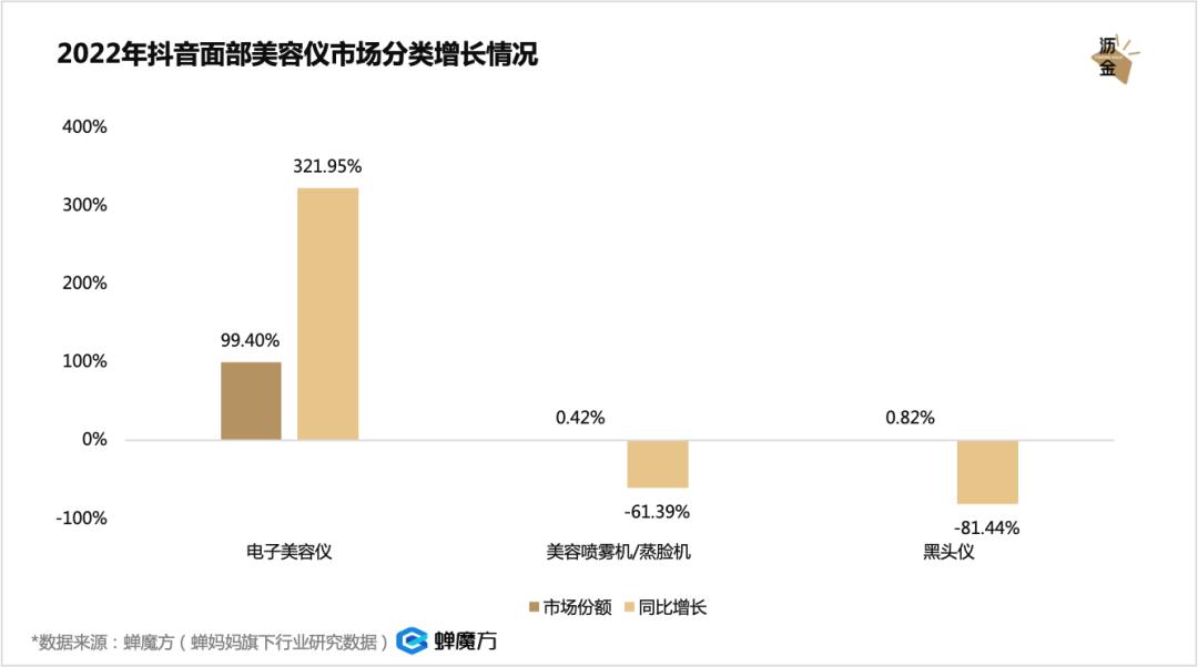 2022年是抖音的面部美容仪器类目的爆发之年,增量基本来源于电子美容仪。