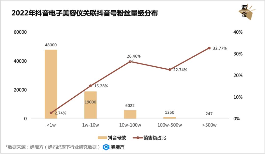 2022年抖音电子美容仪关联账号粉丝量级分布