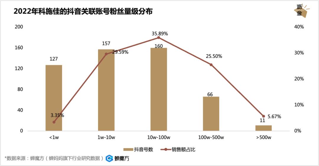 在投放上,科施佳更侧重中腰部账号,其中百万粉以下的账号贡献了超过一半的销售额。
