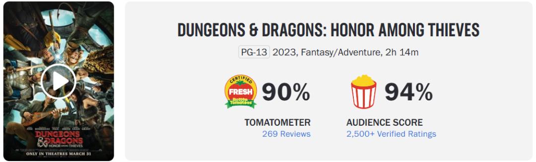 3月最后一周,《龙与地下城:侠盗荣耀》正式公映。