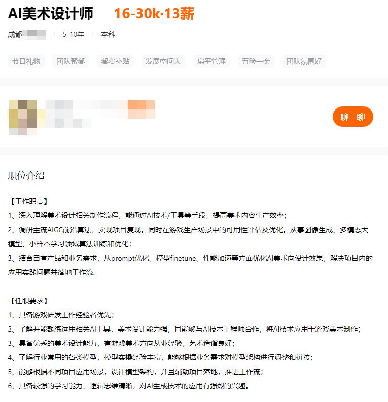 这时曾曾才意识到即使同为AIGC,同为AI训练后出图,他们这种以炼制人物为发展路线的AI画手也并不受到游戏招聘市场的欢迎,游戏行业普遍需要对背景、道具等训练出图有经验的设计师,还要求这些设计师有一定的美术基础,能够在生成图片的基础上进行一定的再创作以去除AI痕迹。