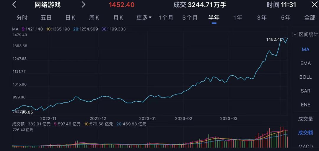 和此前如UGC、VRAR、云游戏、元宇宙等等一样,“AI”已经在过去5个月内为网络游戏板块带来了超过60%的涨幅。不只三七互娱、完美世界、世纪华通这样稳定在二梯队的企业,金科、巨人这样沉寂许久,且暂无热门新品的“掉队”公司也都拿到了多次飘红。