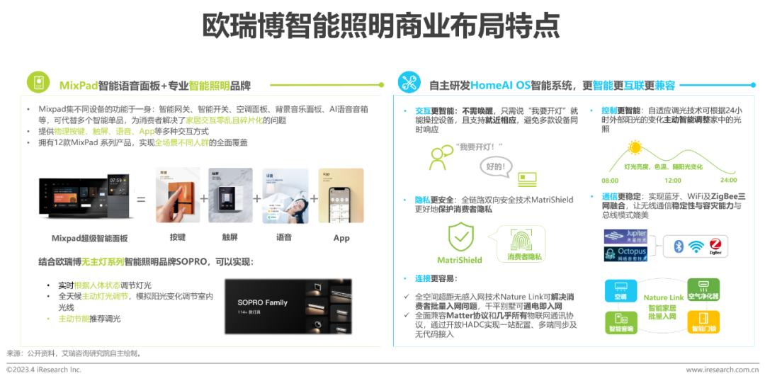 欧瑞博的优势是原创Mixpad智能语音面板和自主研发HomeAI OS系统,使欧瑞博智能照明打破了生态链企业的限制,可以做到主动智能调光,主动智能节能,并在智能体验方面独树一帜。